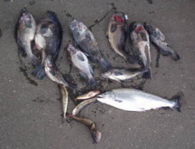 | 平成19年5月6日 船釣り大会吹込漁港、船3隻19名でソイ、ホッケ、タラ、柳の舞の五目釣りでした。クロゾイ3.3kg頭に20〜30匹とまあまあでした。 |