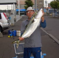 | 平成19年8月9日 暫くぶりの更新です。オホーツクのカレイ釣りに行っていました。今回は久々にブリつりです。8/9夜PM8:00の出港で、8名天々4名、エサ3名、ジギング1名。天々が有利で12kg、11kg、9kgの3匹でした |