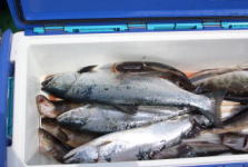 | 10/20 | 庶野沖の五目釣り | 店の大会で庶野沖のサケ、柳の舞、五目釣りに行ってきましたが、サケは姿を見せず。五目釣りも思った程の釣果(柳の舞30匹、タラ3匹)では有りませんでした。 |
