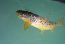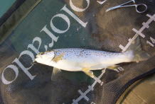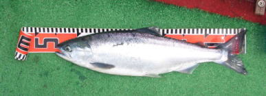| 平成18年3月26日 朱太川に釣に行って来ました。私達はボツボツ釣れていましたが、対岸にてバカバカ釣っている釣師がいました。良く見るとルアーロッドに「釣研」の「ななめトバシ」を付け下にはフライを付けているでは有りませんか。海では珍しくは有りませんが、川では余り見かけません。彼はサケ稚魚パターンで良型アメマスを60cmを頭に10数匹爆釣していました。臨機応変さすが!! |