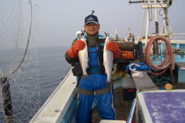 | 平成19年2月18日 今年は何時に無く日本海が好調との情報で神恵内に行って来ました。処が先週と違って今週は不調!それでも1隻で28匹、1kg〜3kgでした。 |