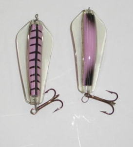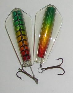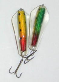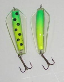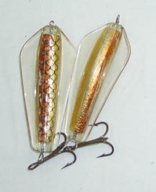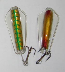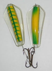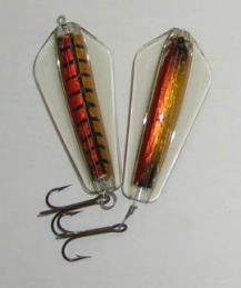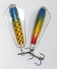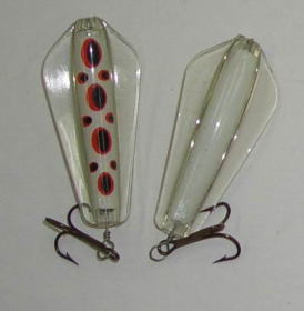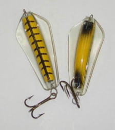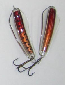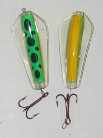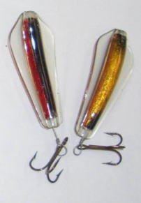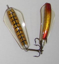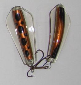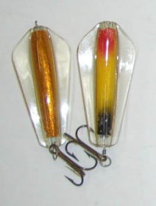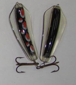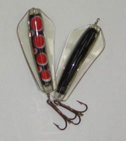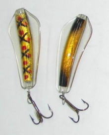 | 写真はルアーの表 裏です。タスマニアンデビルとほぼ同じで、上下逆にして使う事によってアクションを変えて使う事が出来ます。 | |||