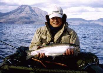 | H13.11.11 LCC大会にて 北澤氏 ニジマス55cm 得意の「キタザワミノー」 | |